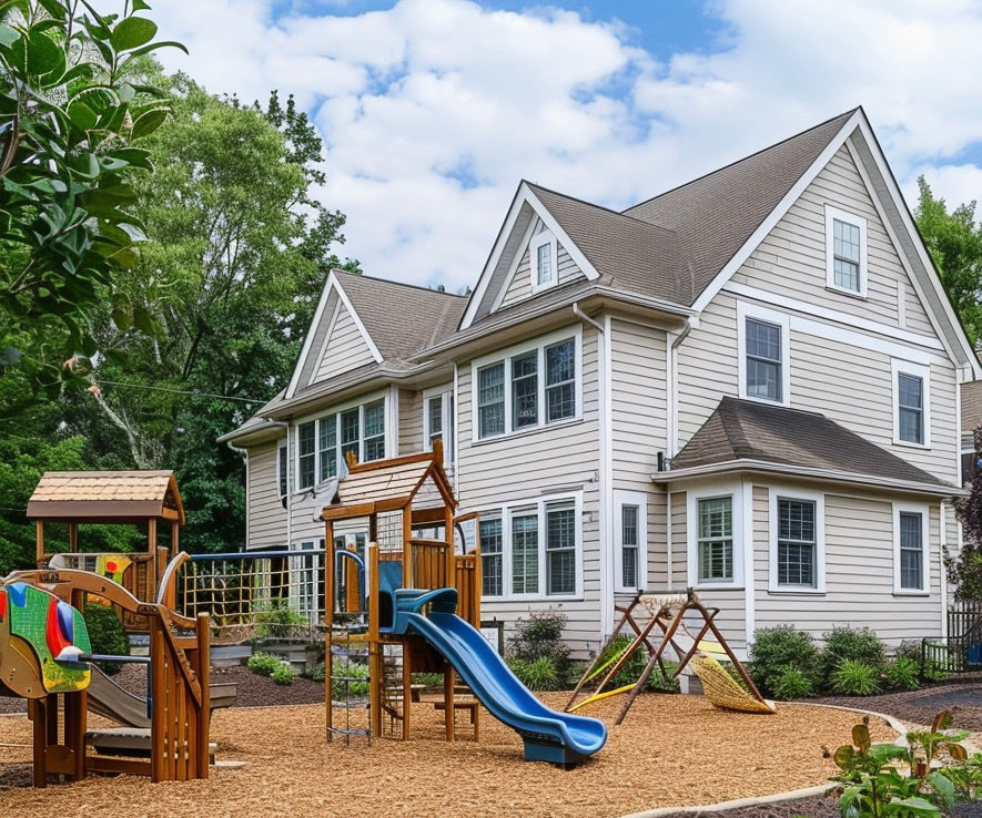 Typically lighter in color. This mulch is chipped, not shredded, and meets the State of MI requirements for use in and around playgrounds. It also has other applications such as being used for dog runs.
